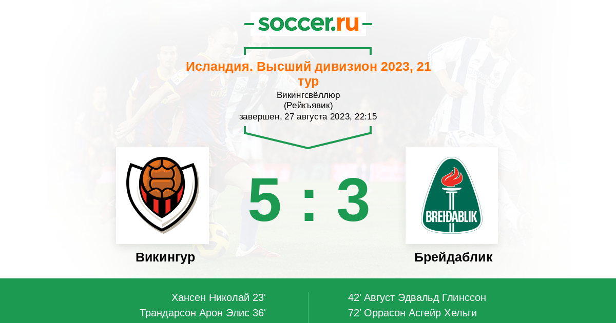 23' (1:0) Хансен Николай (23) (Ингасон Бирнир (18))