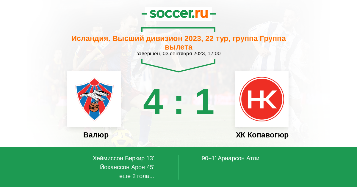 90+1' (4:1) Арнарсон Атли (18)