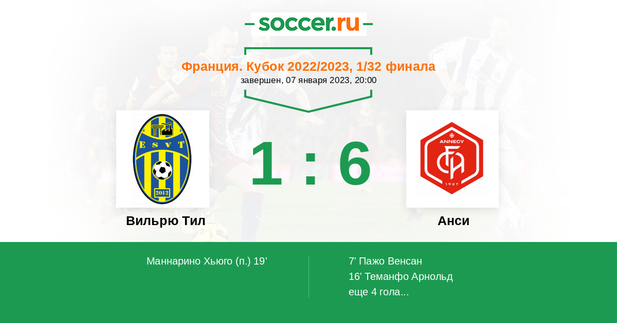 29' (1:4) Пажо Венсан (6) (Биллемаз Клеман (10))