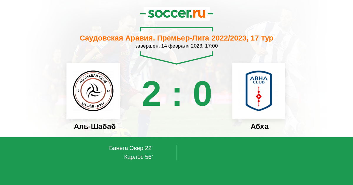 56' (2:0) Карлос (13) (Аль-Скур Фаваз (27))