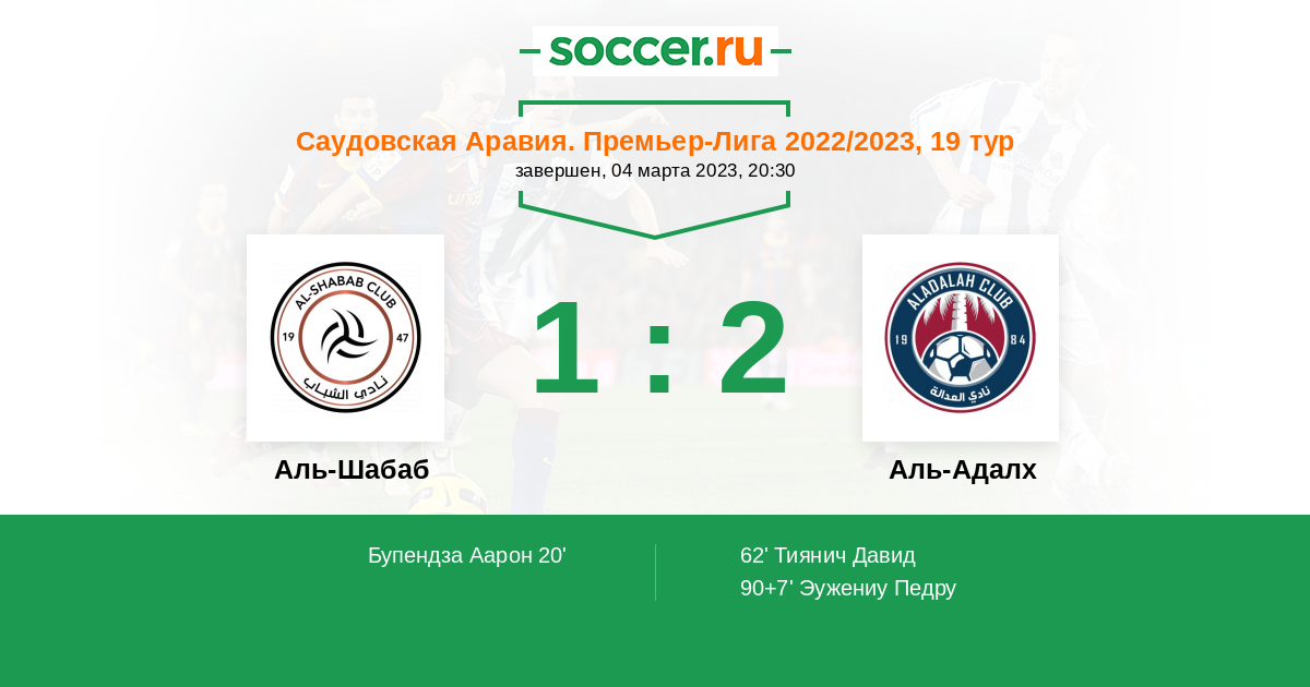 62' (1:1) Тиянич Давид (43) (Аль Султан Ахмед (6))