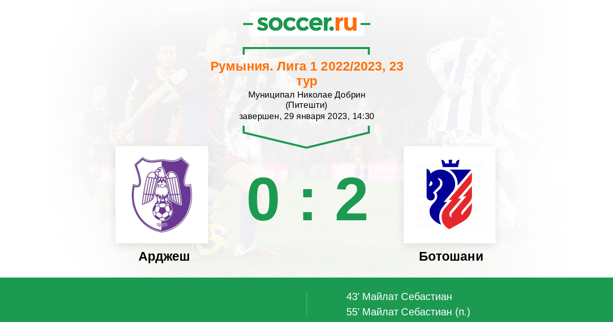 43' (0:1) Майлат Себастиан (26) (Мбоко Айртон (14))