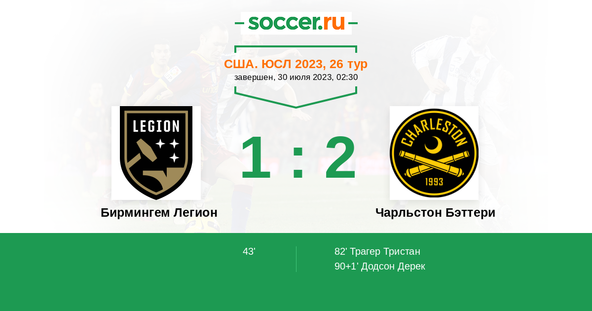 82' (1:1) Трагер Тристан (21) (Уилльямс Аугустин (9))