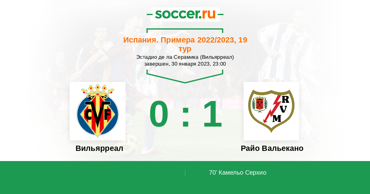 70' (0:1) Камельо Серхио (34) (Трехо Оскар (8))