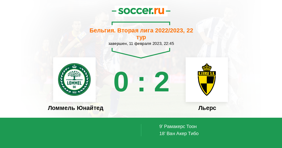9' (0:1) Рамакерс Тоон (28) (Шутерден Нильс (18))