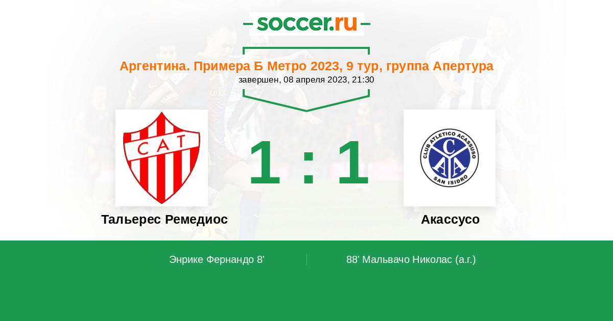 88' (1:1) Автогол Мальвачо Николас