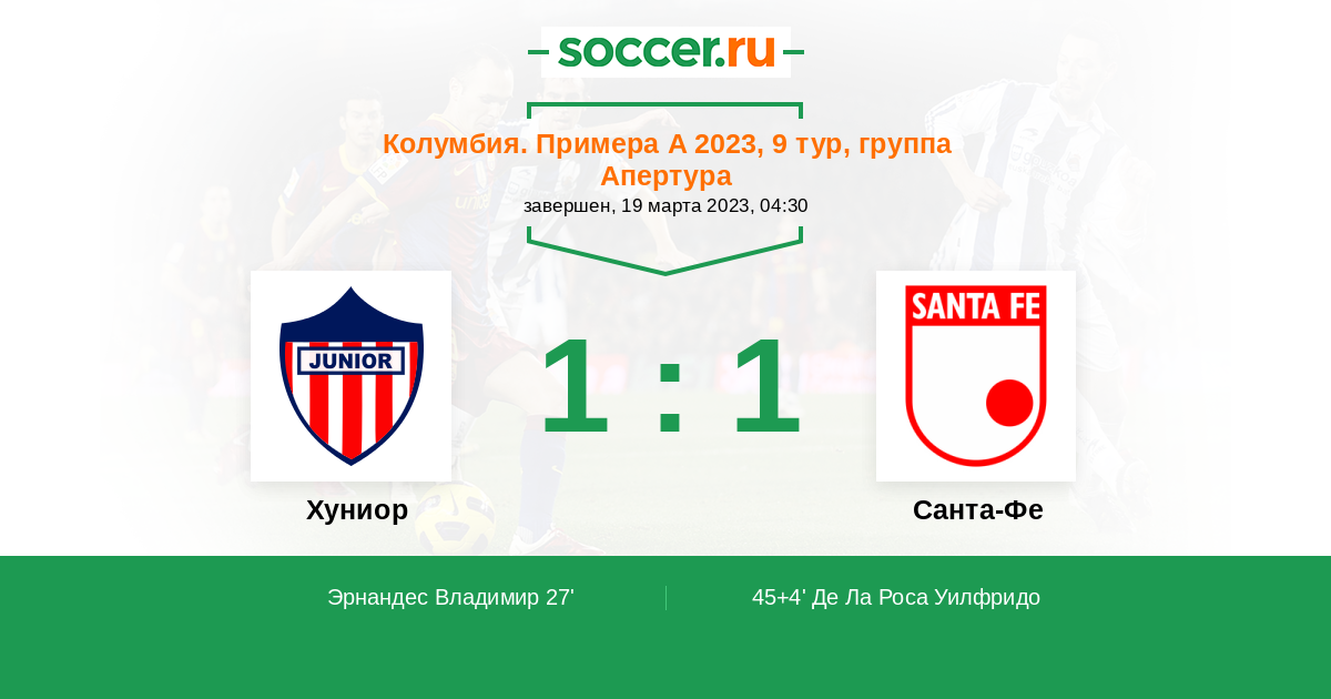 45+4' (1:1) Де Ла Роса Уилфридо (9) (Рохас Иван (5))