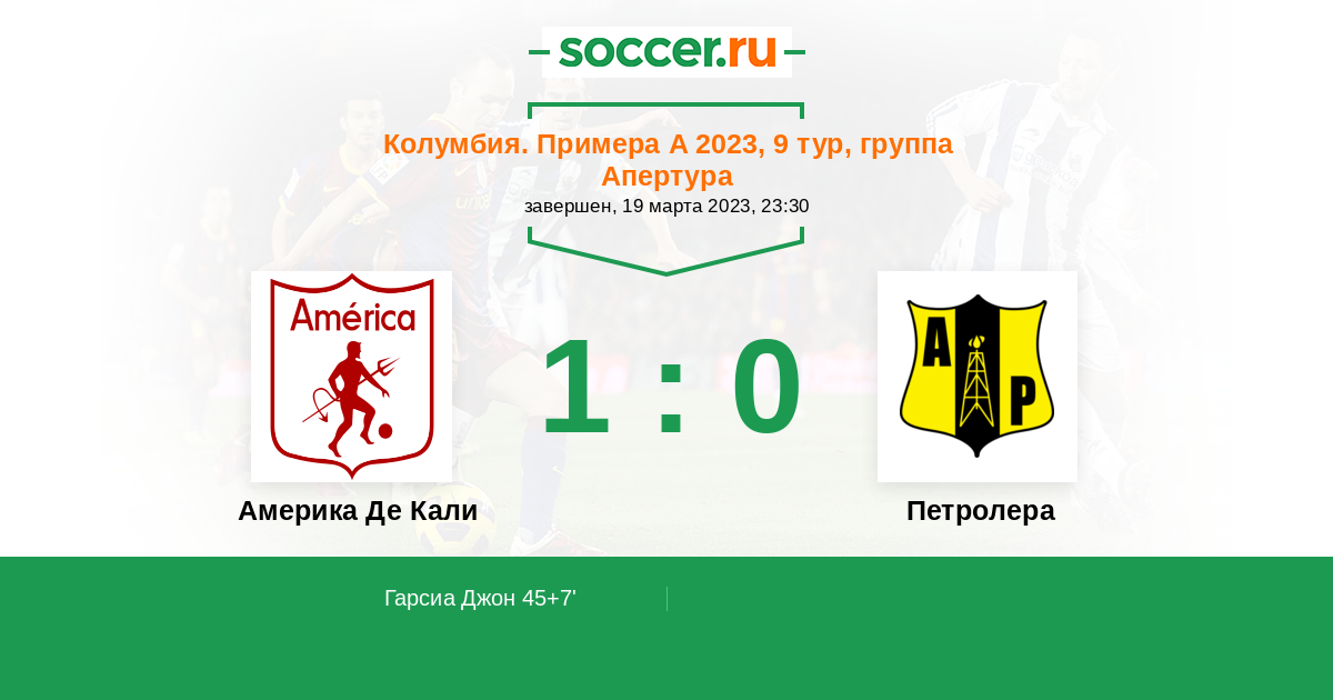 45+7' (1:0) Гарсиа Джон (15) (Рамос Адриан (20))