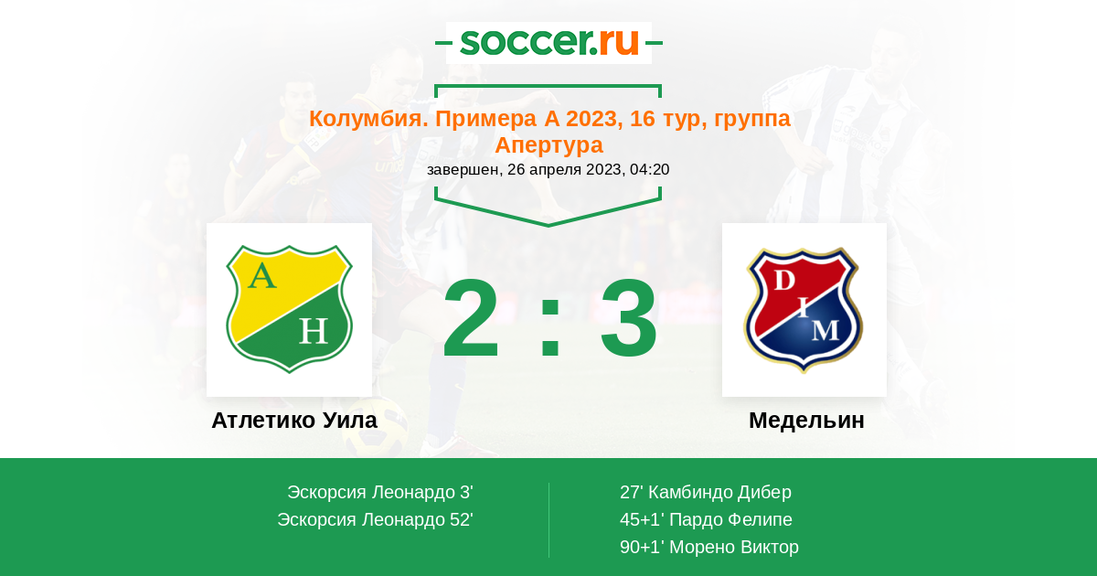 45+1' (1:2) Пардо Фелипе (17) (Монсалве Мигел (20))