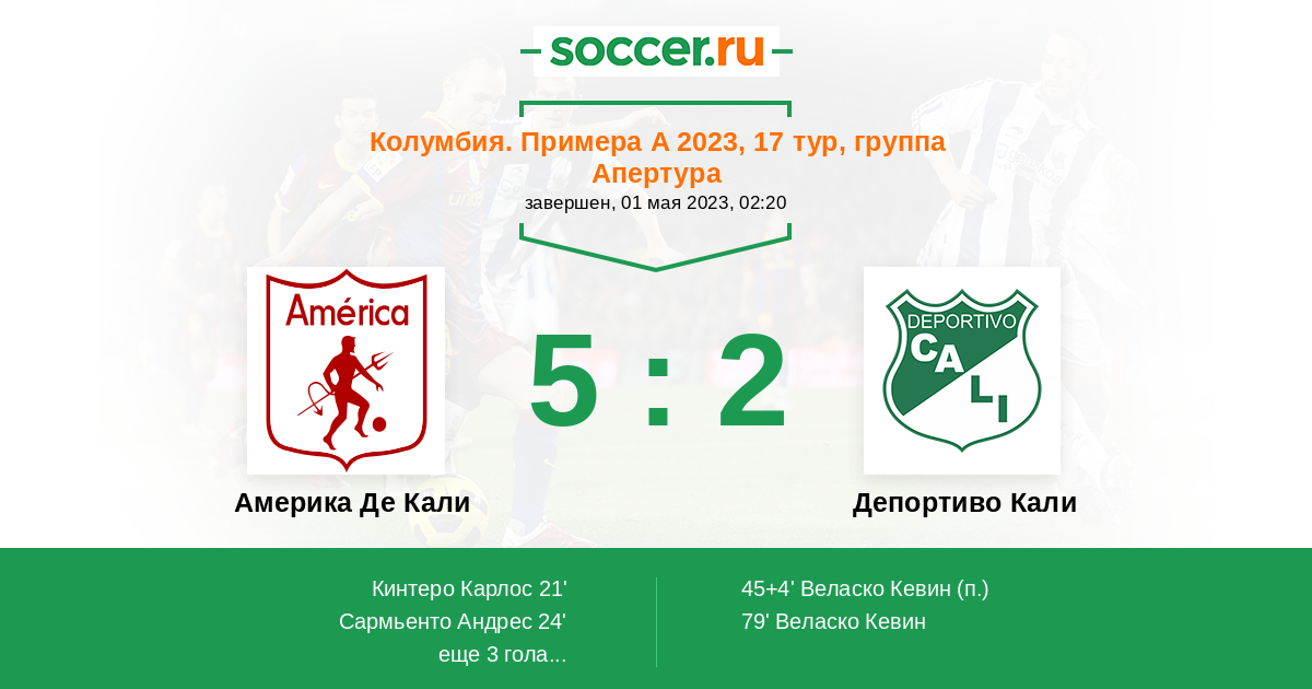 40' (3:0) Фальке Яго (10) (Кинтеро Карлос (25))