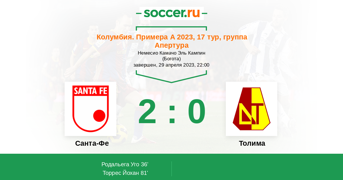 36' (1:0) Родальега Уго (11) (Эспитиа Хуан (12))