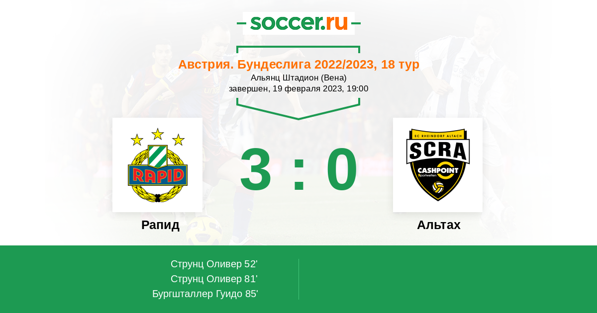 85' (3:0) Бургшталлер Гуидо (9) (Касиус Денсо (2))