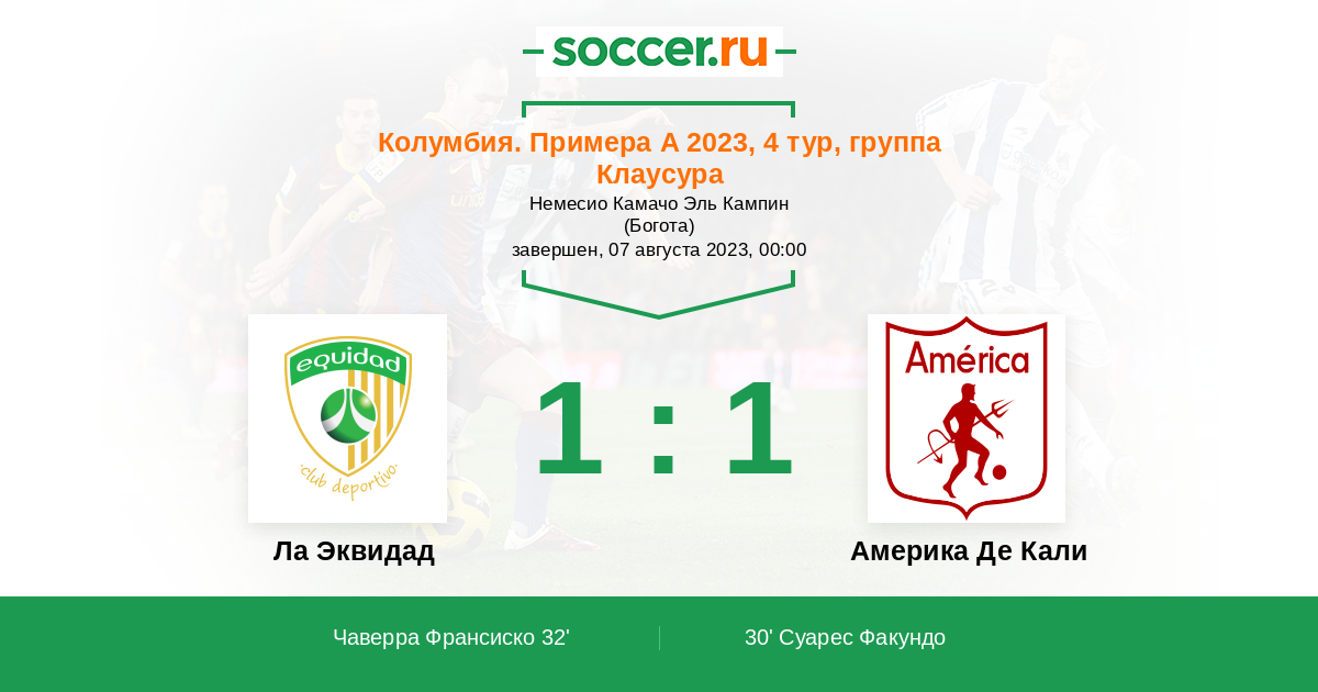 32' (1:1) Чаверра Франсиско (13) (Кастро Хоан (20))