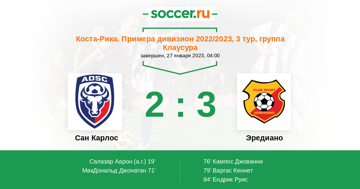 19' (1:0) Автогол Салазар Аарон