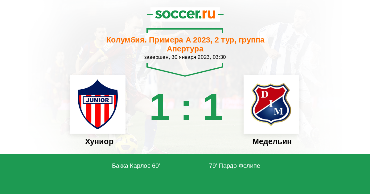 79' (1:1) Пардо Фелипе (17) (Ибаргуэн Андрес (11))