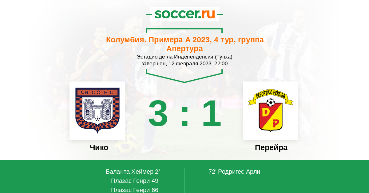 72' (3:1) Родригес Арли (30) (Паласиос Кевин (7))