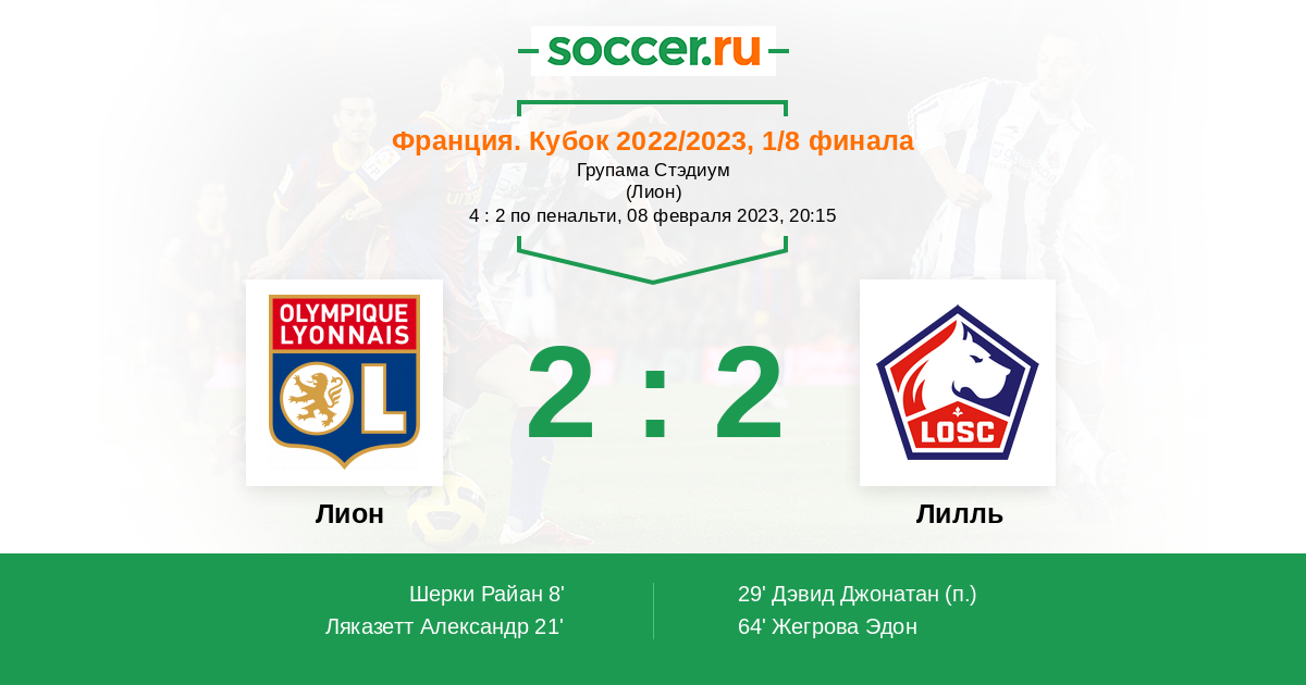8' (1:0) Шерки Райан (9) (Ляказетт Александр (10))