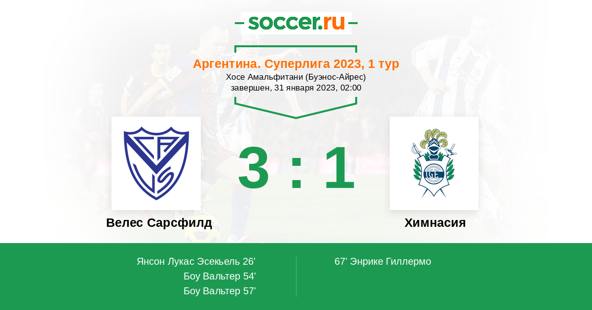 Запасные: 19 Осорио Абель (с 71'), 32 Ордоньес Кристиан (с 71'), 29 Хара Леонардо (с 79'), 34 Фернандес Дамиан (с 90+2'), 26 Сеоне Матео (с 90+2'), 4 Гарсия Хоакин, 42 Престианни Джанлука, 14 Лобато Ленни, 33 Кабрера Элиас, 27 Менендес Джонатан, 23 Пернисоне Патрисио, 25 Гомес Эммануэль