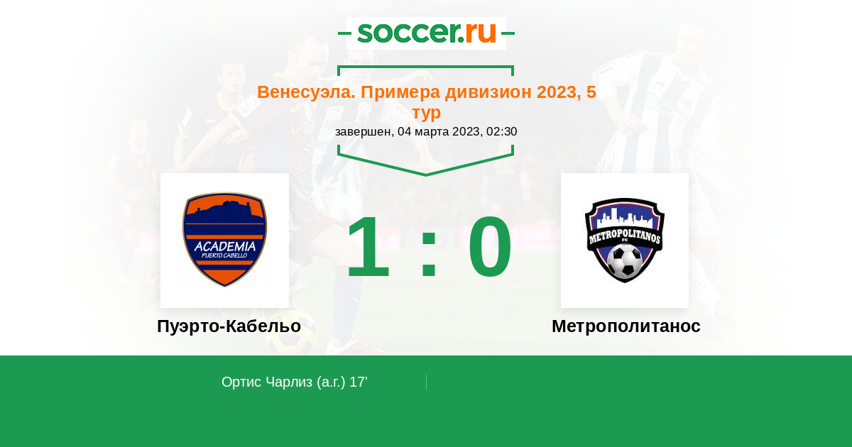 17' (1:0) Автогол Ортис Чарлиз (21)