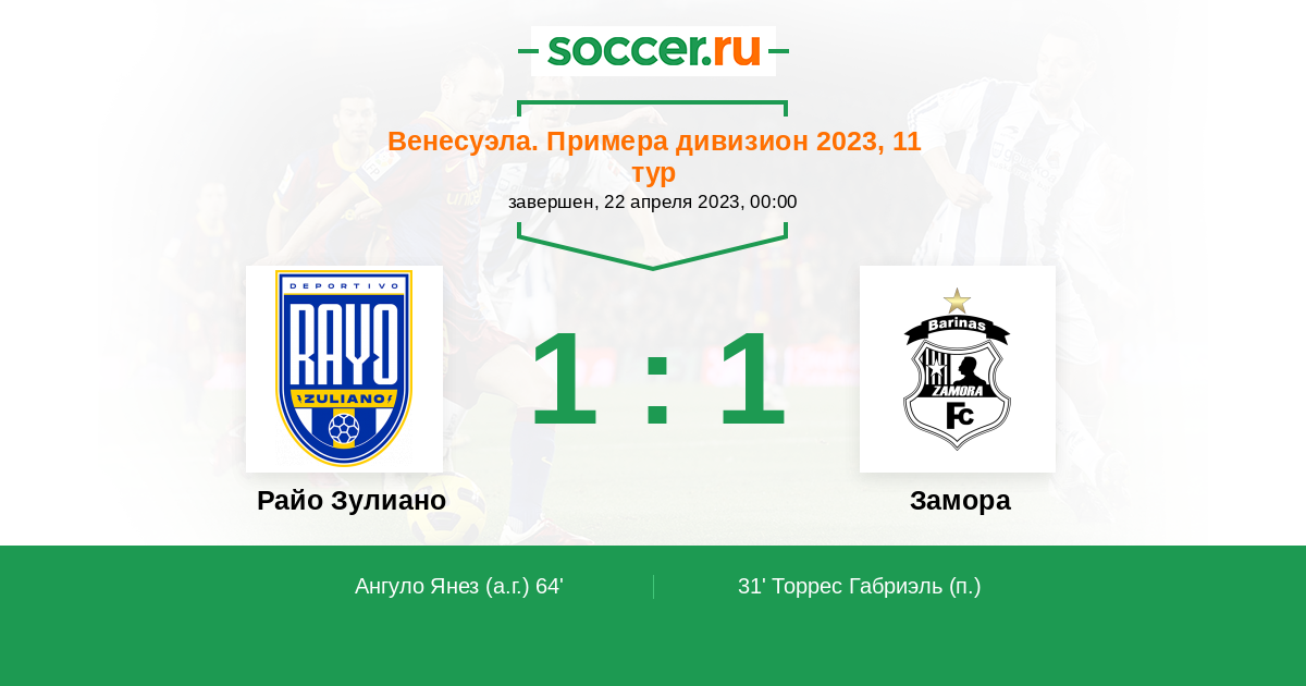 64' (1:1) Автогол Ангуло Янез (23)