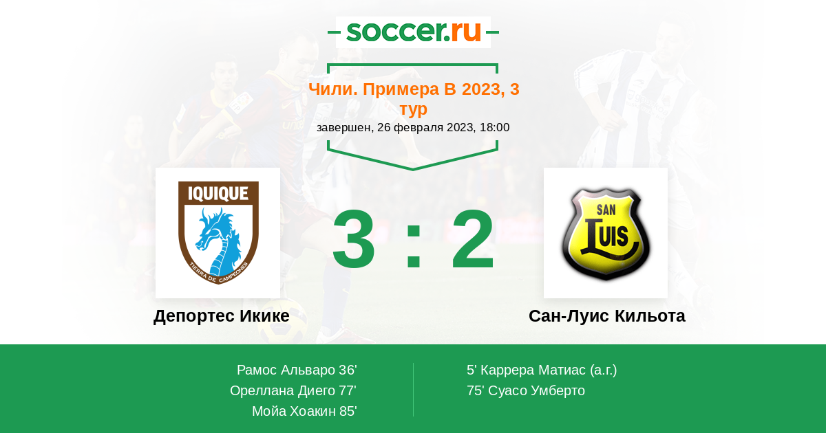 Запасные: Гонсалес Сесар (с 54'), Дельгадо Альваро (с 62'), Ореллана Диего (с 62'), Мойа Хоакин (с 62'), Контрерас Жорди (с 90+3'), Сеговиа Хуан, Рейес Матиас