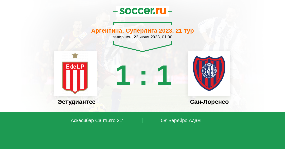 21' (1:0) Аскасибар Сантьяго (5) (Ромеро Заид (2))
