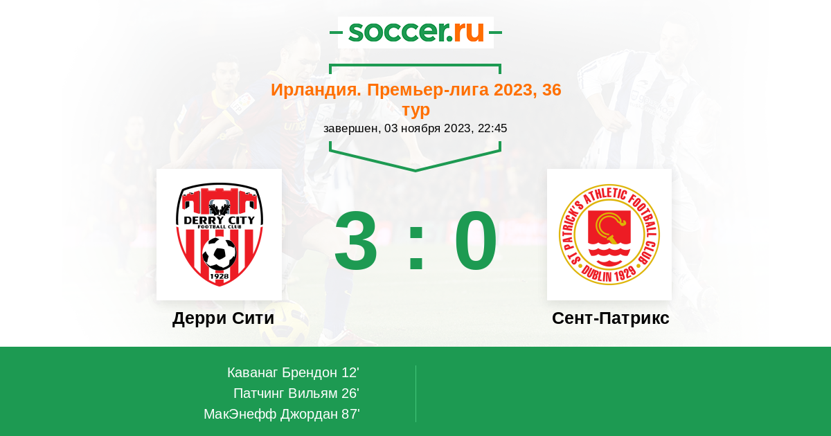 26' (2:0) Патчинг Вильям (8) (Доэрти Бен (14))