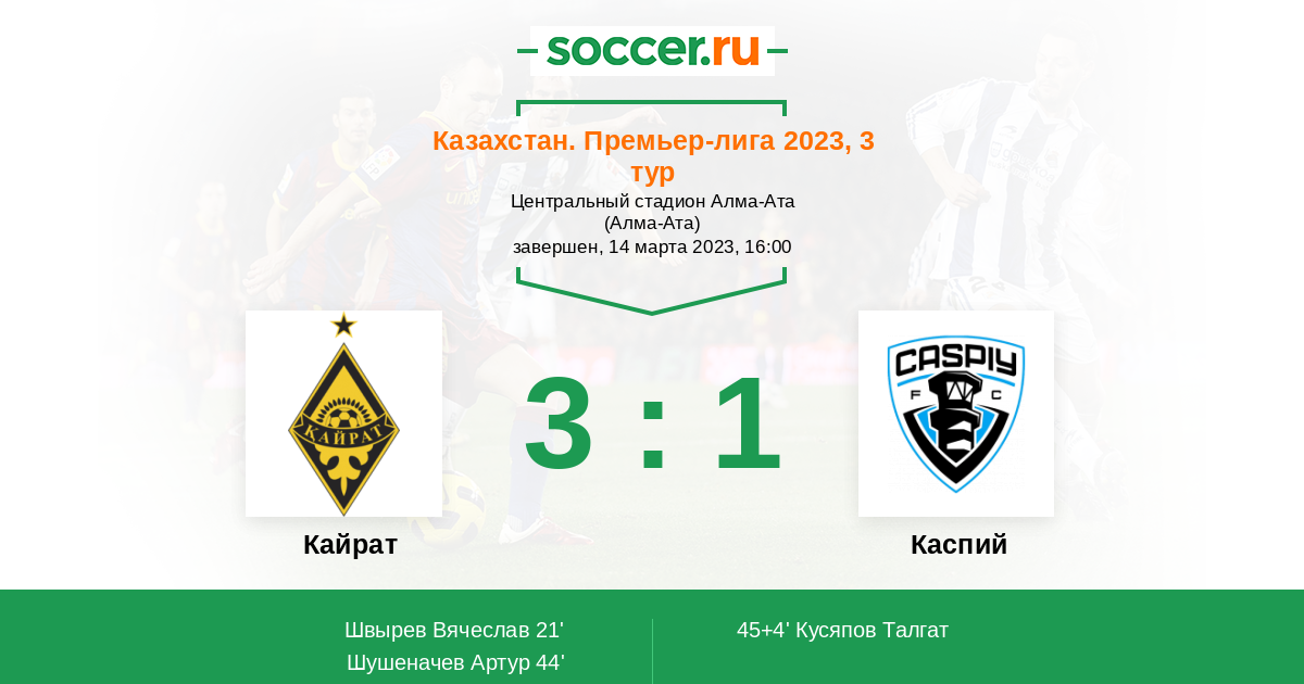 Запасные: Алыкулов Гулжигит (с 60'), Ульшин Андрей (с 71'), Сергеев Дмитрий (с 71'), Кенжебек Галымжан (с 88'), Буранчиев Арсен (с 88'), Ткаченко Егор, Кургин Лев, Кобеев Мирас, Ульянов Вадим, Абдулла Айбар, Мрынский Александр, Широбоков Александр