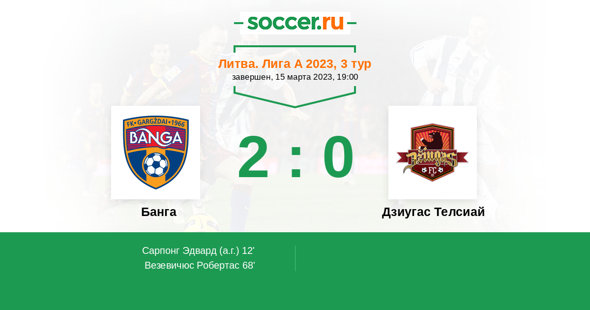 Запасные: 11 Довидаитис Дейвидас (с 58'), 70 Басилио Кайке (с 85'), 77 Венкус Игнас (с 85'), 27 Урбис Сигитас (с 90'), 88 Смулкис Эрикас (с 90'), 5 Виейра Гонсало, 20 Толейкис Каролис, 22 Петрикас Мантас, 28 Конкейсао Вилсон, 55 Берташиус Мантас