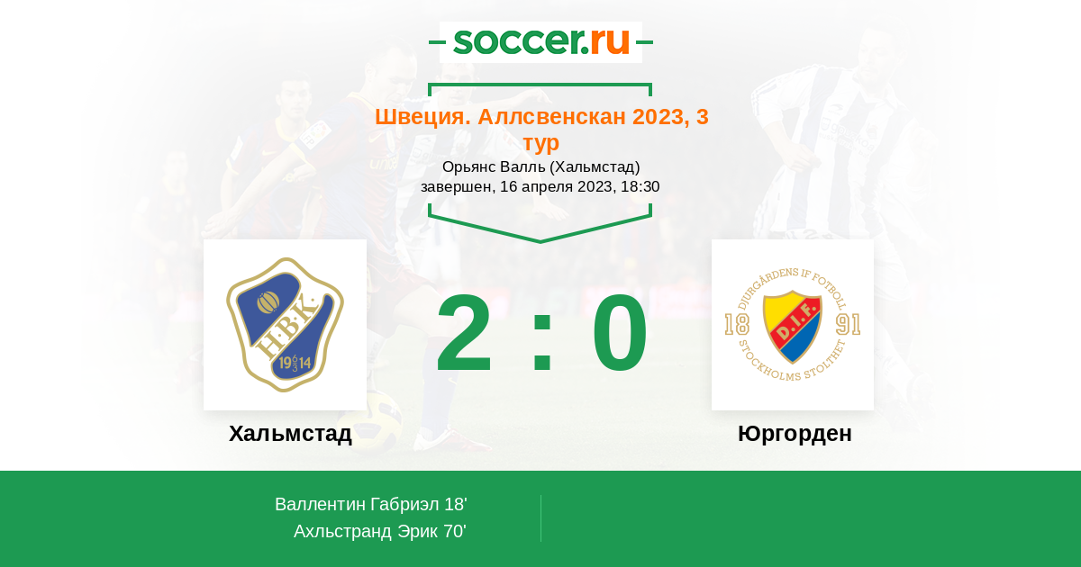 18' (1:0) Валлентин Габриэл (3) (Сведберг Джонатан (8))