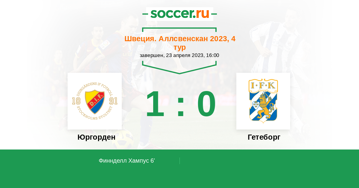 6' (1:0) Финнделл Хампус (13)