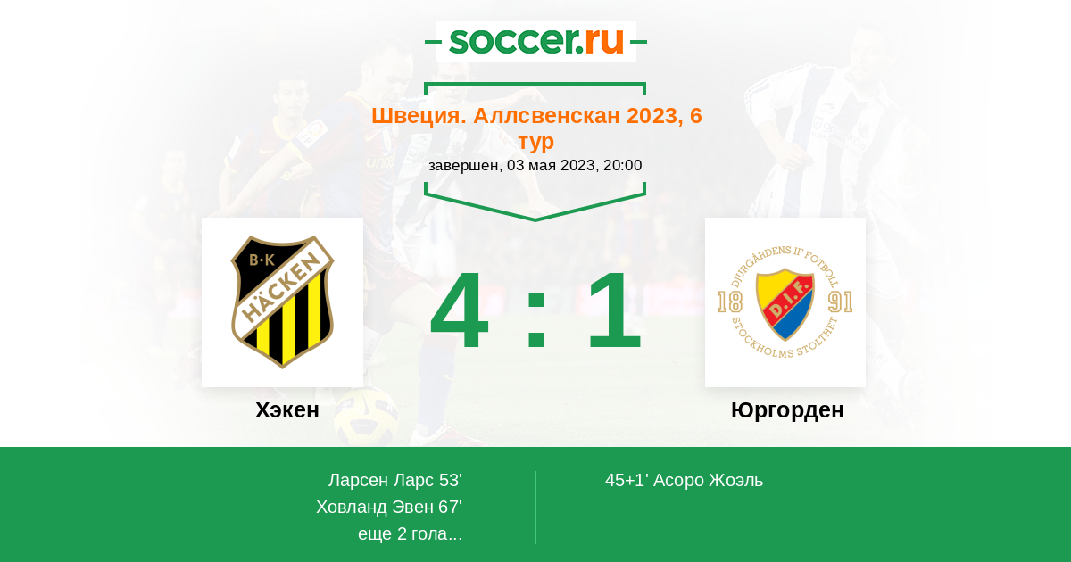 85' (4:1) Ларсен Ларс (24) (Густафссон Самуэль (11))