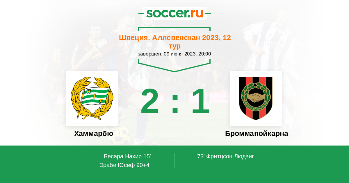 73' (1:1) Фритцсон Людвиг (13) (Васич Никола (9))