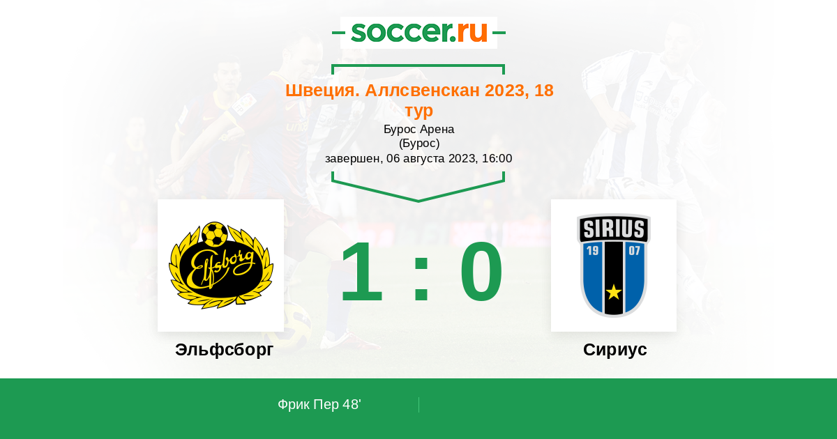 48' (1:0) Фрик Пер (17) (Йохан Ларссон (13))