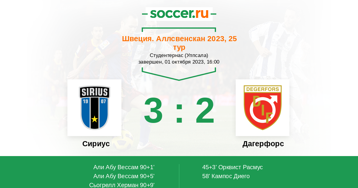 Запасные: 4 Мартенссон Йохан (с 73'), 13 Абдулла Пашанг (с 73'), 15 Корач Сеид (с 82'), 22 Салмон Джастин (с 90+3'), 25 Ольссон Йонас, 23 Хеден Линдског Александр, 6 Валлин Оскар, 47 Павлович Дэмьян, 19 Бичис Карл