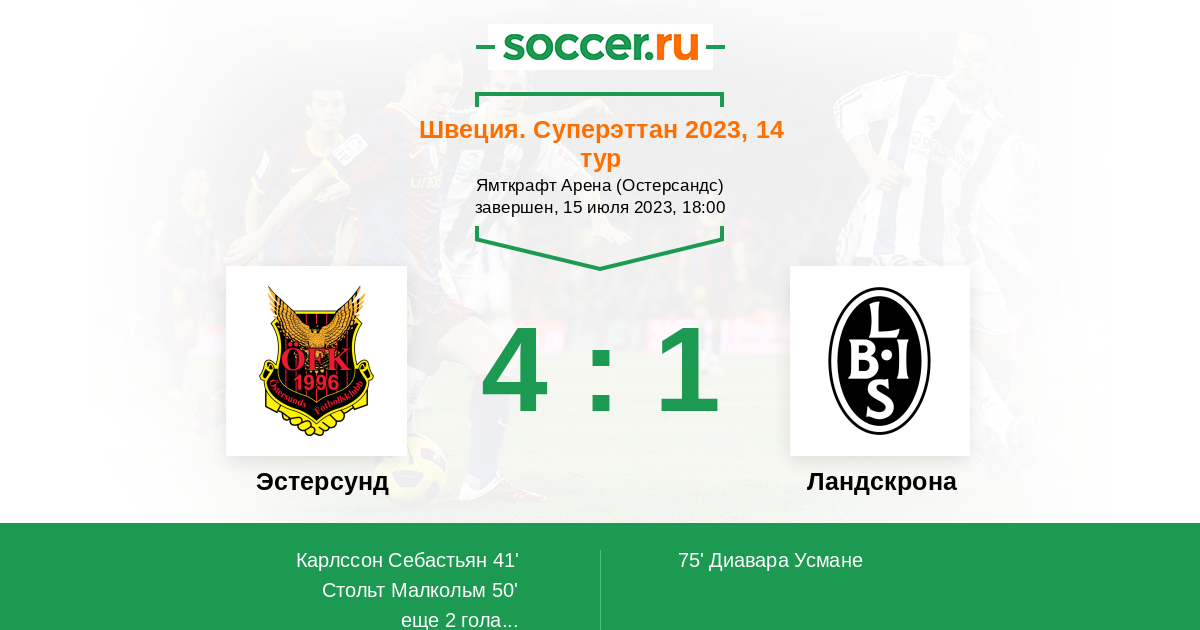 Запасные: 16 Споррног Альбин (с 78'), 19 Надер Андре (с 78'), 27 Ганум Зиад (с 82'), 6 Хеденкист Якоб (с 89'), 1 Кейта Али, 10 Зекович Садмир, 15 Йонссон Якоб