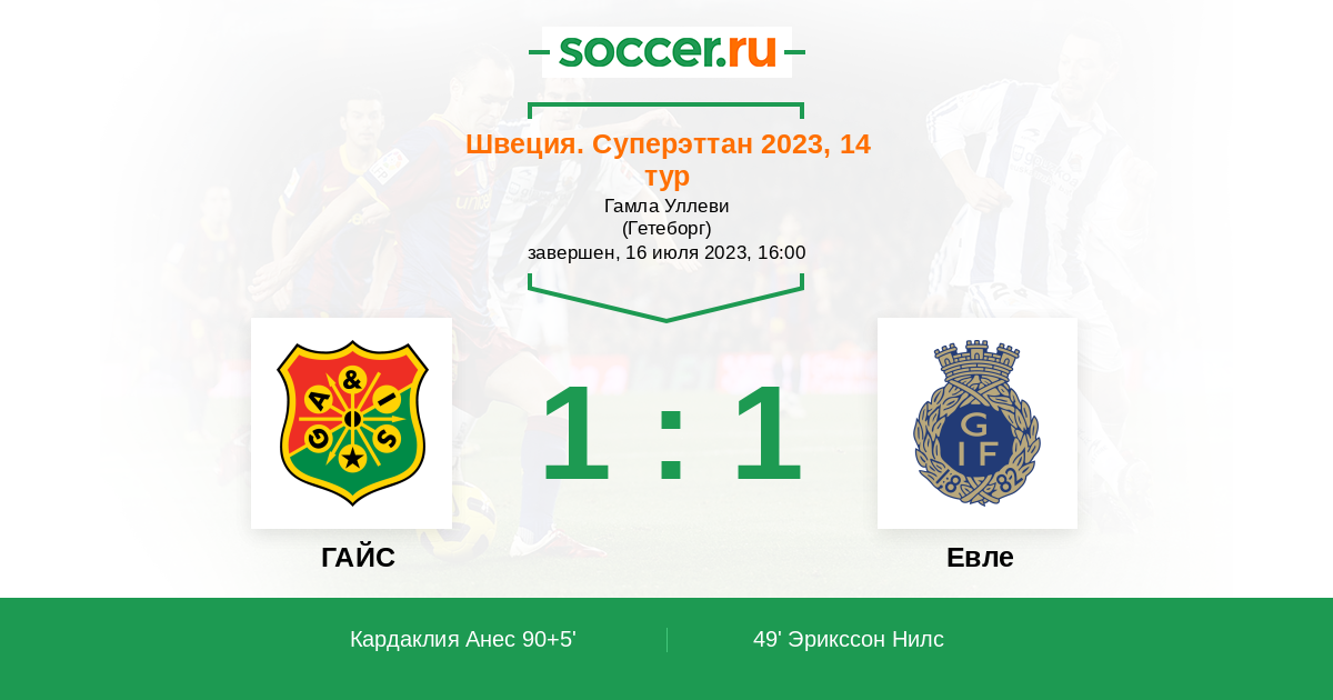 49' (0:1) Эрикссон Нилс (21)