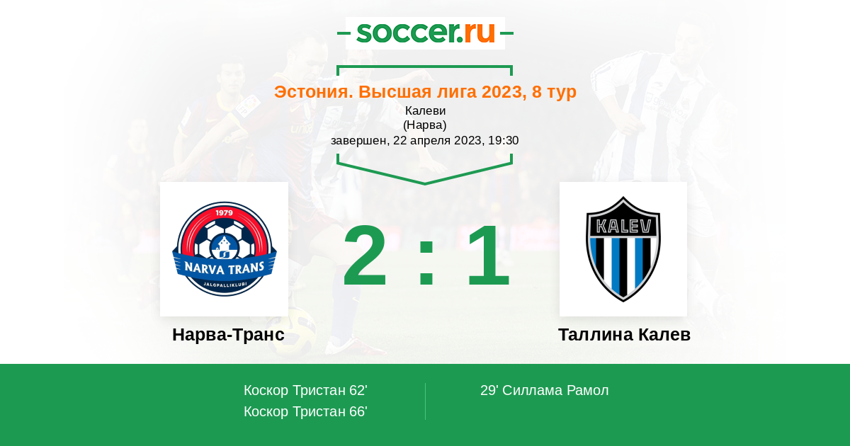 Запасные: 10 Юрисо Таави (с 54'), 16 Киивит Андреас (с 54'), 4 Лаур Каспар (с 71'), 9 Травалли Фодай (с 85'), 18 Михайлов Вадим, 20 Лейватегия Маркус, 29 Тамберг Танель, 37 Шевяков Даниил, 71 Риммель Майко