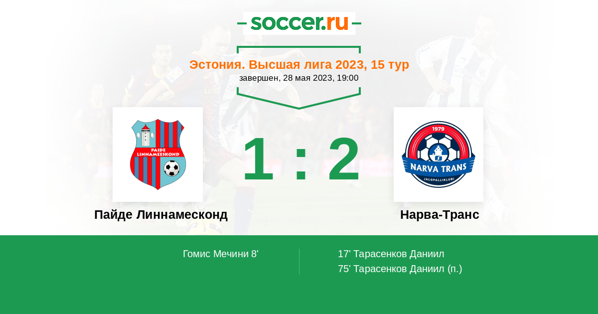 Запасные: 7 Рииберг Херол (с 80'), 11 Сааг Каймар (с 80'), 1 Аксалу Микхел, 2 Нит Оливер, 3 Пельт Кристьян, 18 Чам Бабу, 25 Видас Стен, 50 Метсо Кевин
