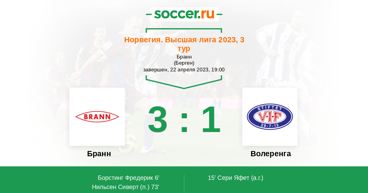 80' (3:1) Хеггебо Ауне (20) (Мухре Феликс (8))