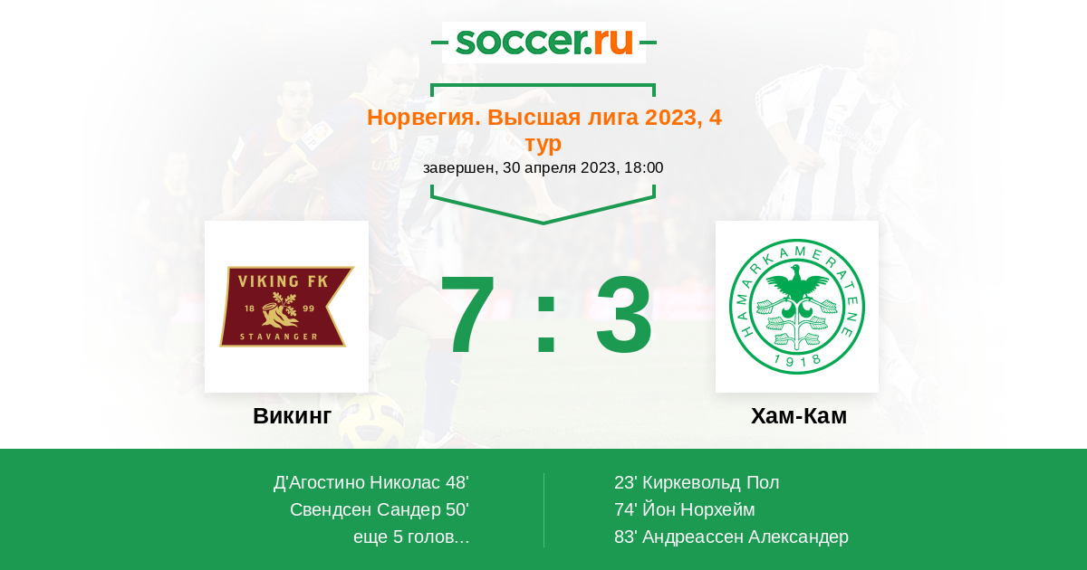 23' (0:1) Киркевольд Пол (16) (Удал Хенрик (14))