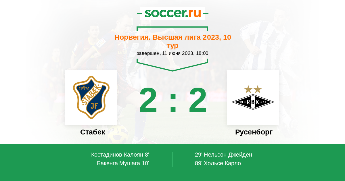 89' (2:2) Хольсе Карло (10) (Даль Рейтан Эрленд (2))