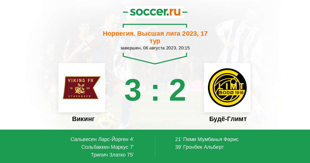 7' (2:0) Сольбаккен Маркус (8) (Бьоршол Сондре (18))