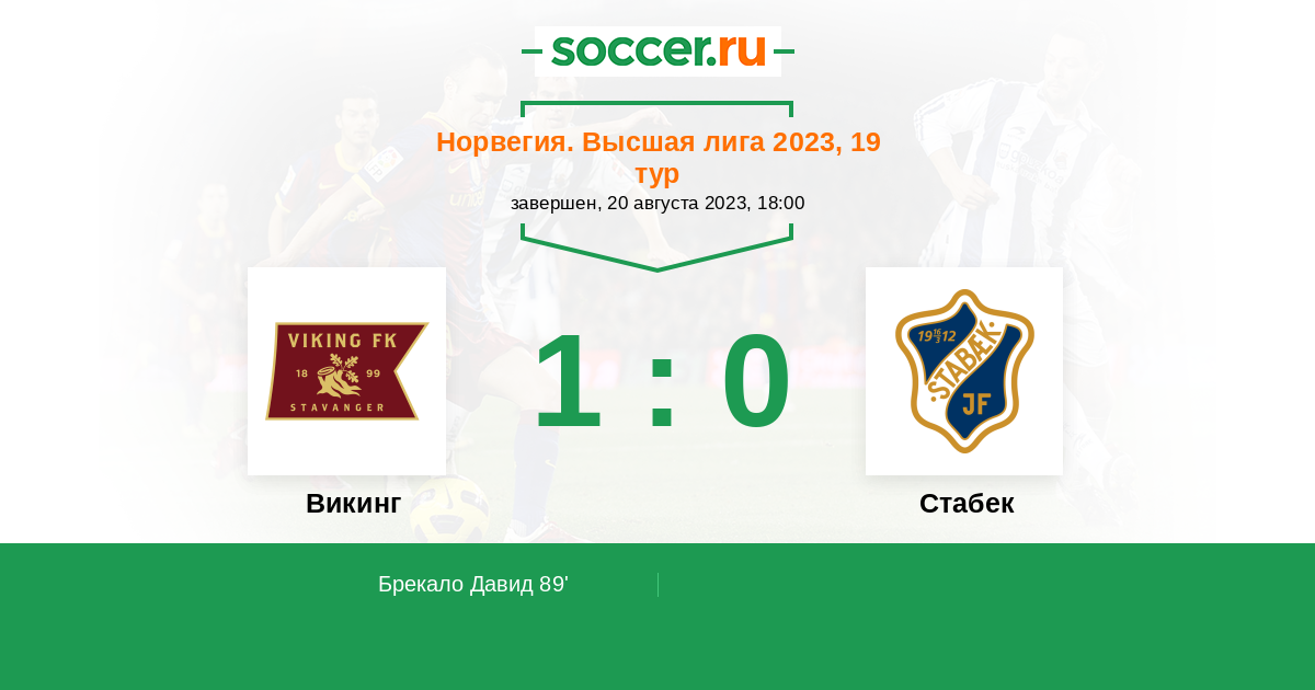 89' (1:0) Брекало Давид (4) (Бьоршол Сондре (18))