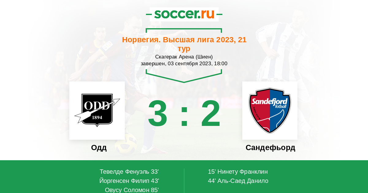 43' (2:1) Йоргенсен Филип (7) (Овусу Соломон (17))