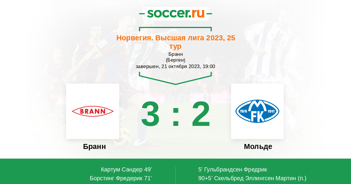 Запасные: 22 Симба Мунга (с 85'), 40 Хелланд Эйвинд Фауске, 21 Кристиансен Рубен, 35 Торсвик Йонас Твиберг, 33 Бендиксен Тренгерейд Мариус, 25 Йенсен Никлас, 12 Йохансен Эйрик