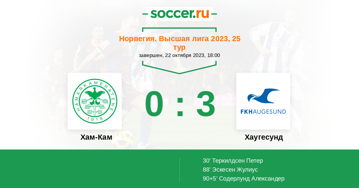 30' (0:1) Теркилдсен Петер (7) (Содерлунд Александер (16))
