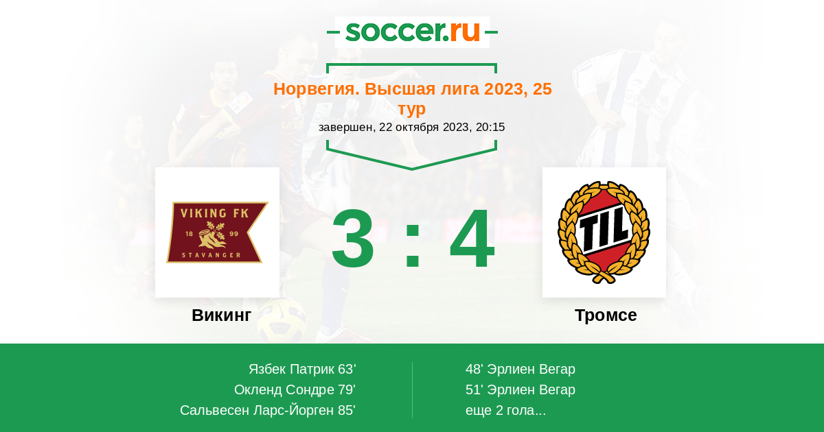 63' (1:2) Язбек Патрик (14) (Танген Харальд (21))