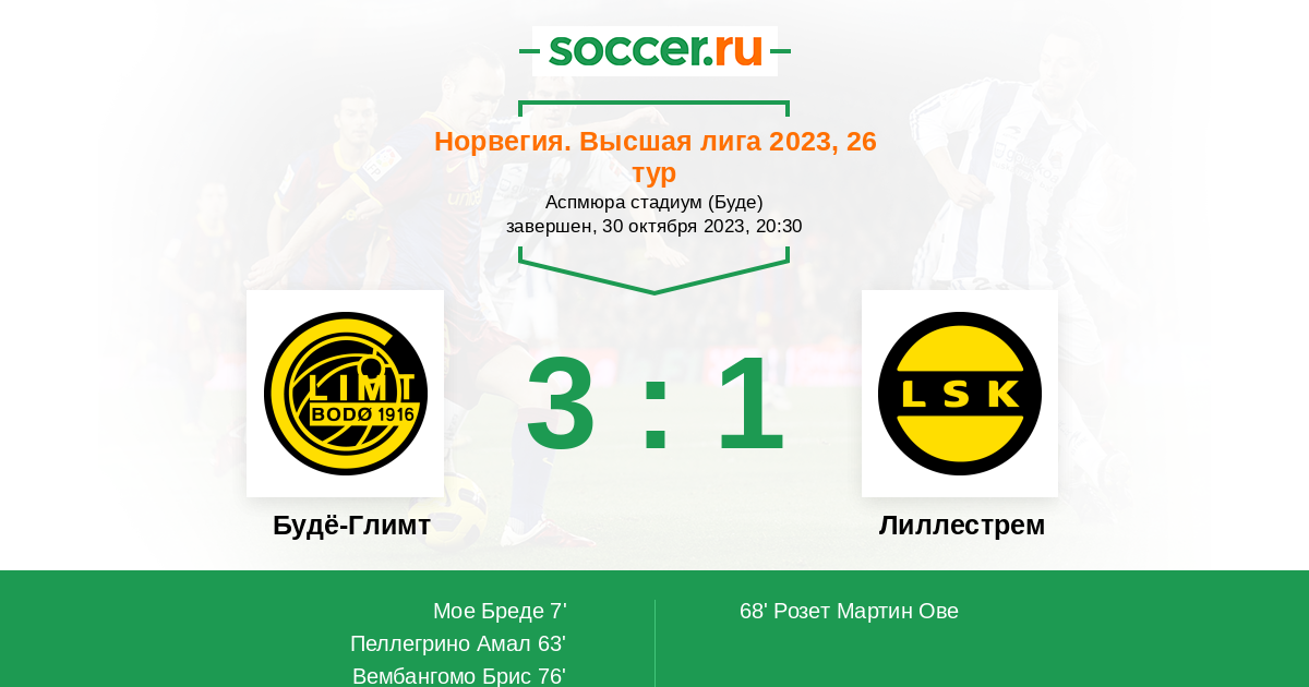7' (1:0) Мое Бреде (18) (Берг Патрик (77))