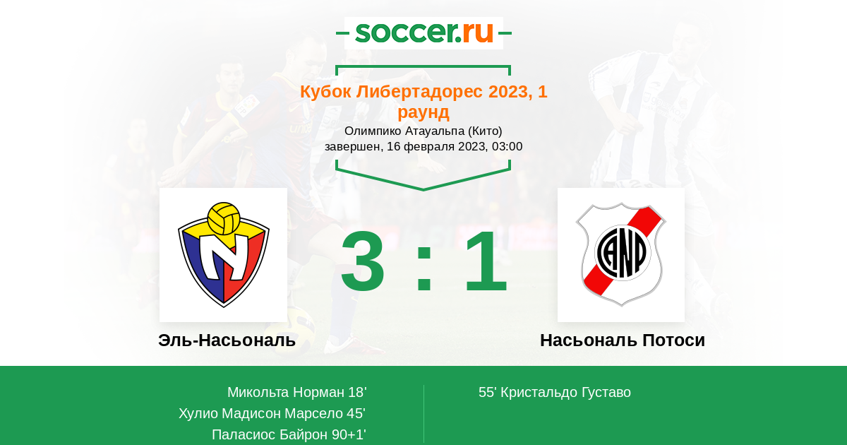 45' (2:0) Хулио Мадисон Марсело (8) (Ордонес Хорхе (43))